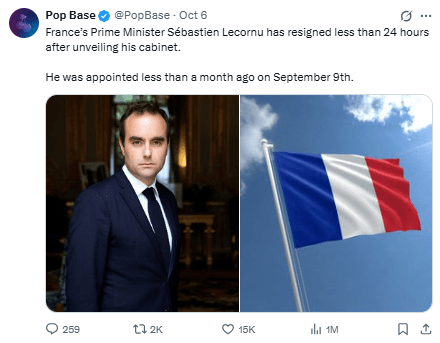 El propio Lecornu ofreció una declaración pública sobre su decisión: «No se puede ser primer ministro cuando no se dan las condiciones» para gobernar, dijo.