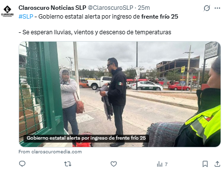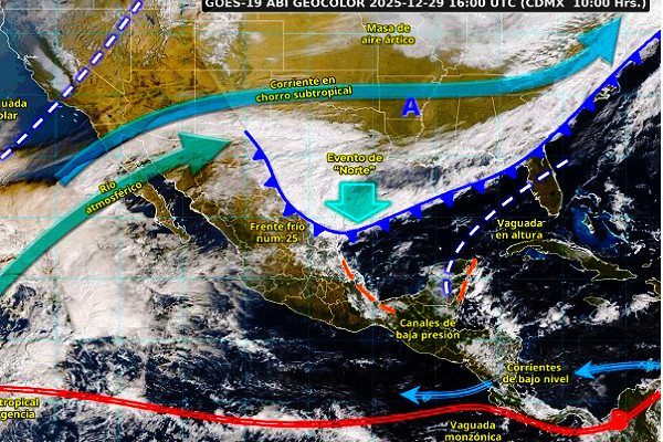 Regeneración, 29 de Diciembre 2025– La Coordinación Nacional de Protección Civil (CNPC), de la Secretaría de Seguridad y Protección Ciudadana (SSPC), informa que durante el cierre del año continuarán prevaleciendo condiciones climáticas adversas.