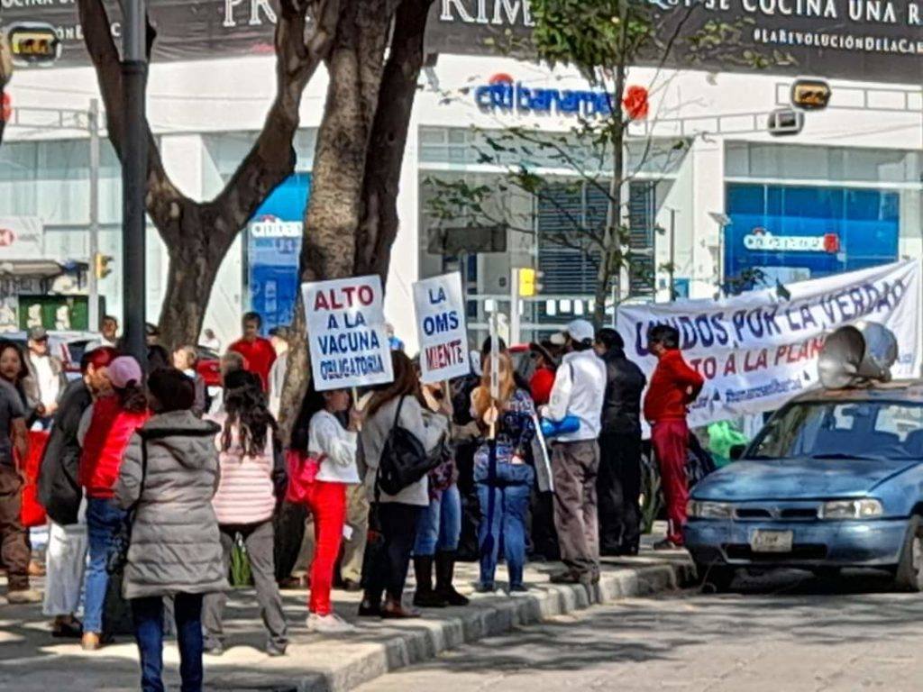Algunas personas tenían carteles con las leyendas: «Alto a la nueva normalidad» o «Alto a la falsa pandemia».