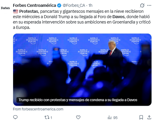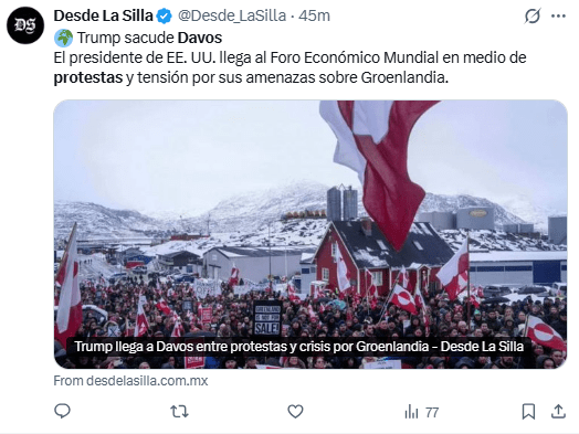 Regeneración, 21 de enero 2026– Cientos de personas se agruparon en Davos antes de la llegada del presidente Trump a la ciudad para participar en el Foro Económico Mundial, un evento anual que reúne a las élites empresariales de todo el planeta.
