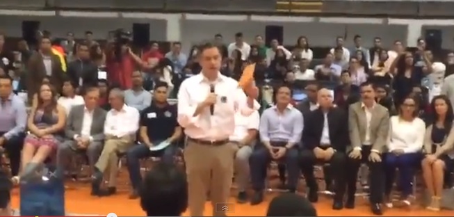 Ante este hecho, Nuño Mayer interrumpió por un momento su discurso y agradeció a los inconformes por expresar sus comentarios.