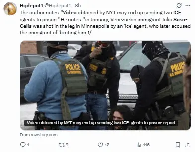 En ese momento, el video parece mostrar que el agente de ICE disparó en su dirección.