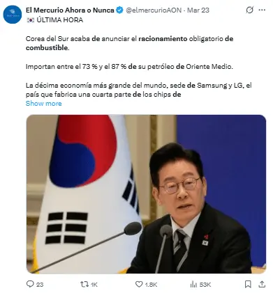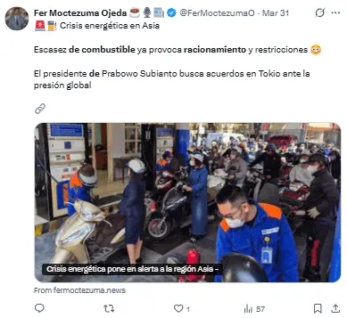 Importando el 98% de su petróleo del Golfo Pérsico, esta nación asiática ha experimentado un aumento significativo en los costos de diésel y gasolina, que se han multiplicado por más de dos.