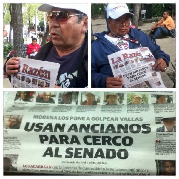 Regeneración, 10 de diciembre de 2013. En su portada del día de hoy, el Periódico La Razón adjudicó declaraciones falseadas y tergiversadas, a adultos mayores que participan en el Cerco al Senado.