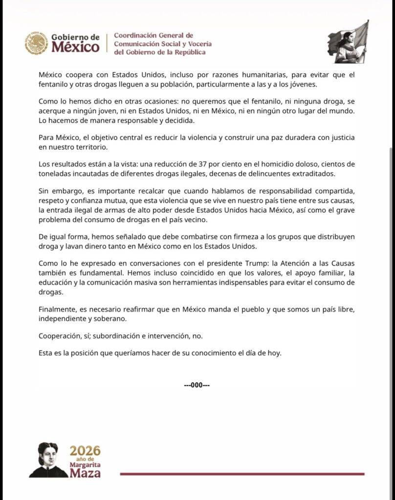 México reafirma que la soberanía y la autodeterminación no son opcionales ni negociables. Son principios fundamentales.