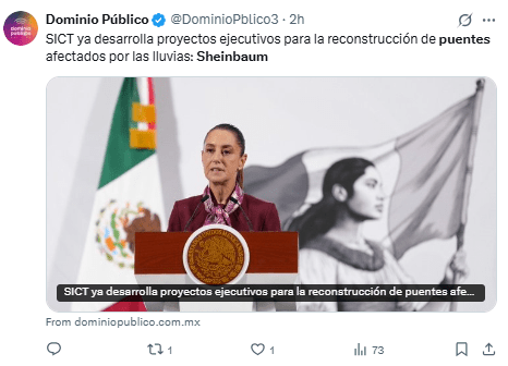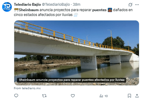 SICT ya desarrolla proyectos ejecutivos para la reconstrucción de puentes afectados por las lluvias: Claudia Sheinbaum