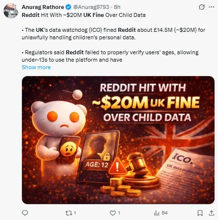 De acuerdo con la ICO, la falta de control en Reddit llevó a que se recogieran datos de usuarios menores de 13 años sin su autorización.