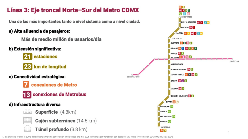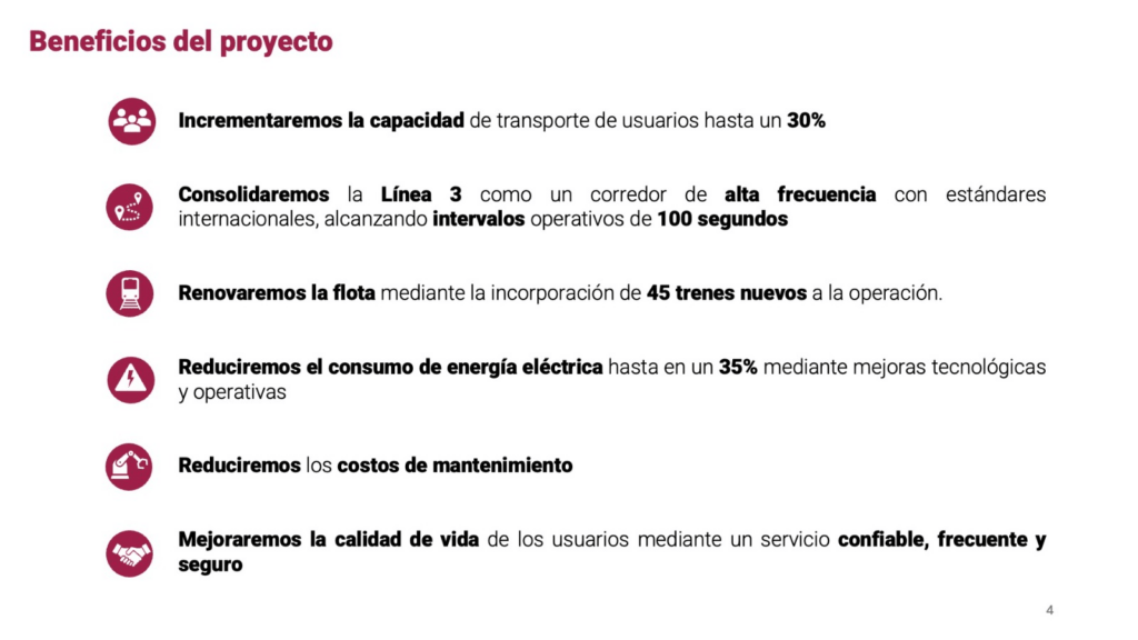 “Ahora, como parte de las necesidades que tiene nuestro Metro, vamos a intervenirlo en la Línea 3, una de las más importantes de la ciudad, que conduce a más de un millón de personas”.