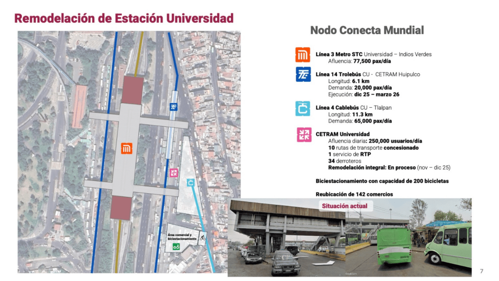 Su remodelación implica la compaginación con el paradero y la nueva Línea 14 del Trolebús, que también estará en el CETRAM Universidad, mismo que tiene una afluencia de 250 mil usuarios al día.