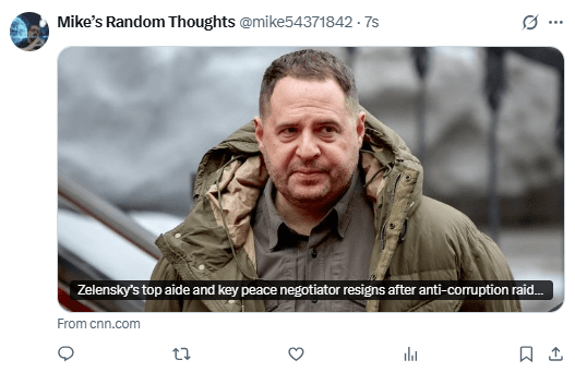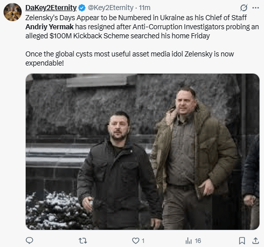 Regeneración, 28 de noviembre 2025– Un estrecho colaborador del presidente Volodymyr Zelensky ha dimitido, horas después de que las agencias anticorrupción allanaran su domicilio. Mientras, Kiev se enfrenta a presiones de EE.UU. para aceptar un acuerdo que ponga fin a la guerra con Rusia.