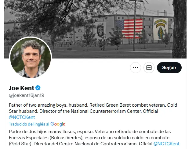 «Fue un honor servir en su administración y a nuestra gran nación», firmado: Joseph Kent, Director del Centro Nacional Antiterrorista.