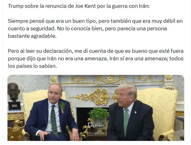Y es que en su misiva se traza una distinción, según Kent, entre la política seguida por Trump durante sus administraciones «hasta junio de 2025».