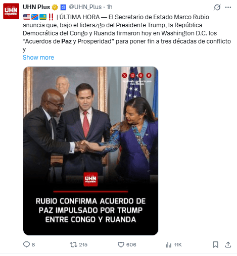 En junio pasado, la RDC y Ruanda ratificaron su acuerdo de paz en Washington.