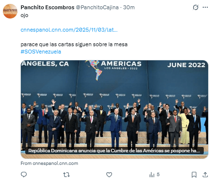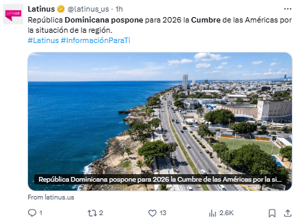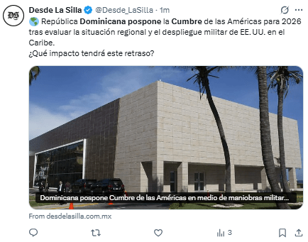 Regeneración 4 de noviembre de 2025– El Gobierno dominicano anunció anoche que pospondrá al próximo año la X Cumbre de las Américas, decisión adoptada tras consultas con socios estratégicos del hemisferio y organismos internacionales vinculados a la organización del foro regional.