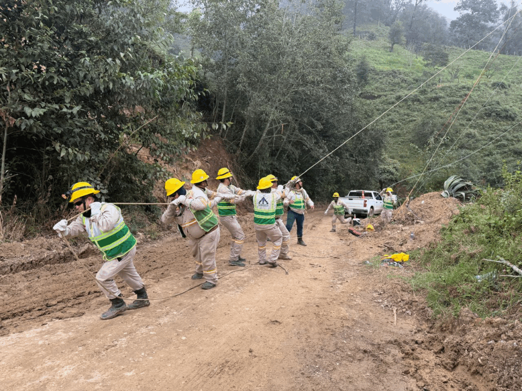 En coordinación con la SEDENA, con el objetivo de atender con rapidez las zonas donde la creciente de ríos y los deslaves dañaron la infraestructura eléctrica.