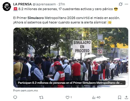 El tiempo promedio de evacuación fue de un minuto con 52 segundos, logrando una participación masiva de 8.2 millones de personas en el área metropolitana.