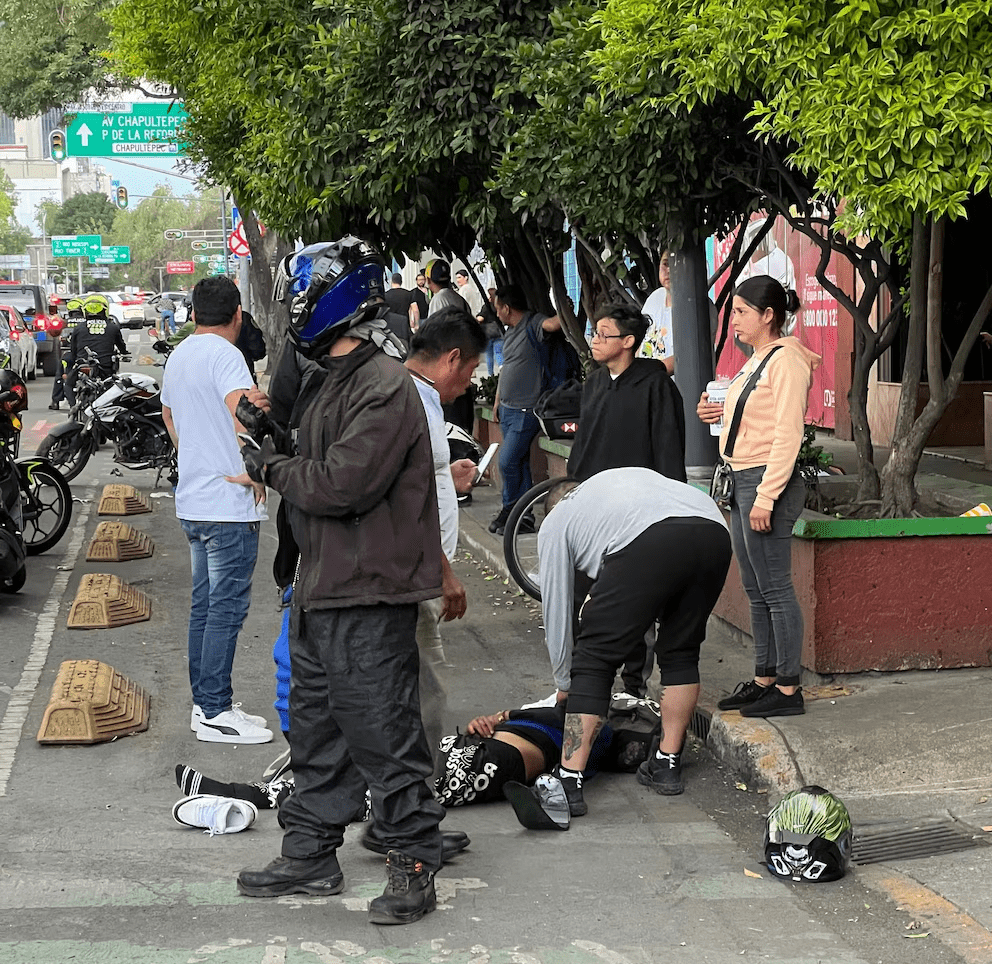 Regeneración, 1 de septiembre de 2025. Desastre de rodada convocada por Sandra Cuevas, asistentes sin casco, motos sin placas. Escapista atropella a ciudadano quien tuvo que ser hospitalizado.