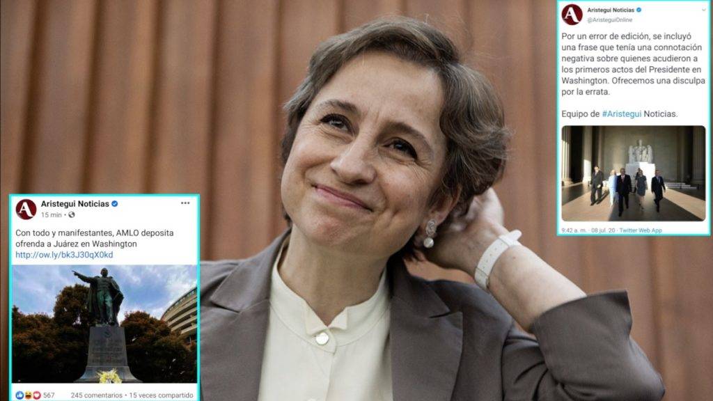 Después de que la publicación comenzó a ser cuestionada en redes por su falta de veracidad, Carmen Aristegui salió a dar la cara y a disculparse sin tampoco darle la importancia merecida, solamente comentando que la publicación realizada en sus redes no correspondían a la cobertura editorial que estaban llevando acabo, y que decidieron borrarla para evitarse mayores cuestionamientos.
