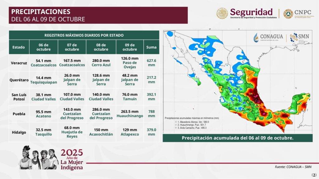 «Seguimos en periodo de emergencia» tras lluvias. Afectaciones en 5 entidades. Coordinación con todos los niveles de gobierno: Sheinbaum