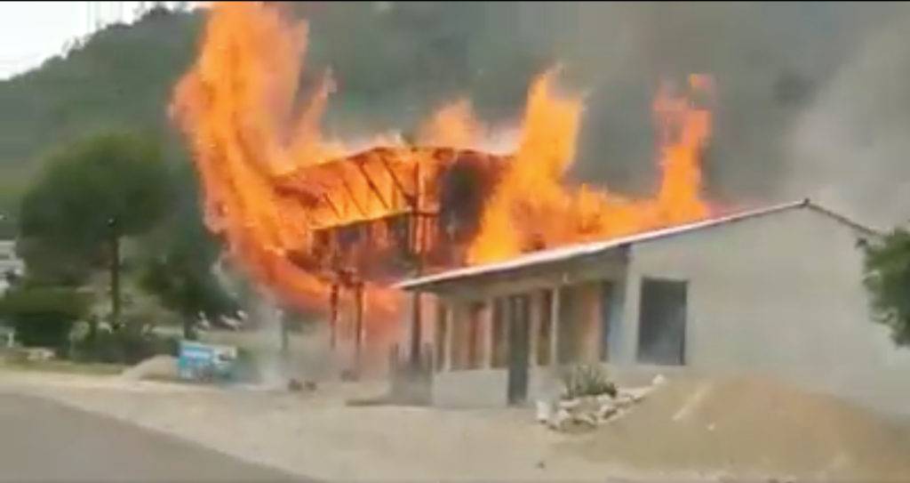 Regeneración, 11 de julio de 2020. Un local de dos plantas que al parecer servía como bodega de almacenamiento para la venta clandestina de gasolina o ‘huachicol’, quedó completamente reducida a cenizas, tras incendiarse el lugar, hasta el momento no se reportan heridos.