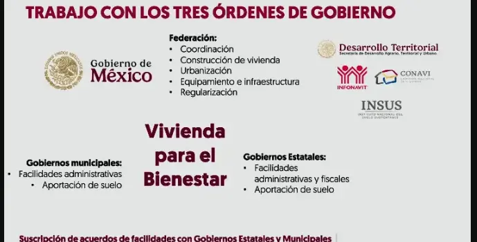 «Vivienda para el Bienestar», con la meta de construir 1.8 millones de viviendas y realizar 1 millón de escrituraciones.