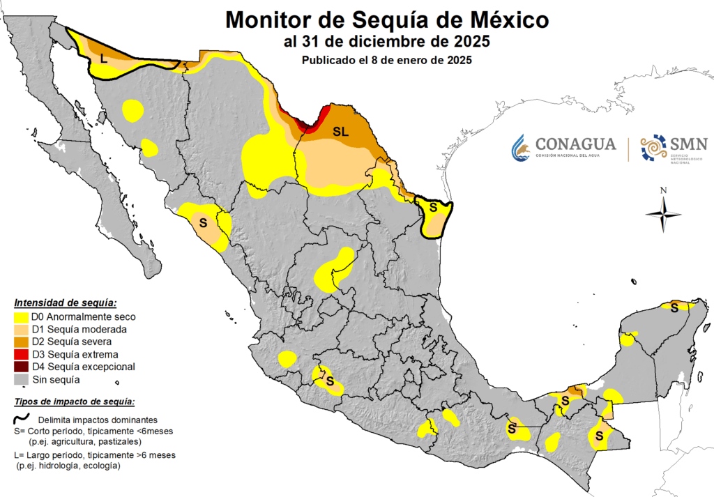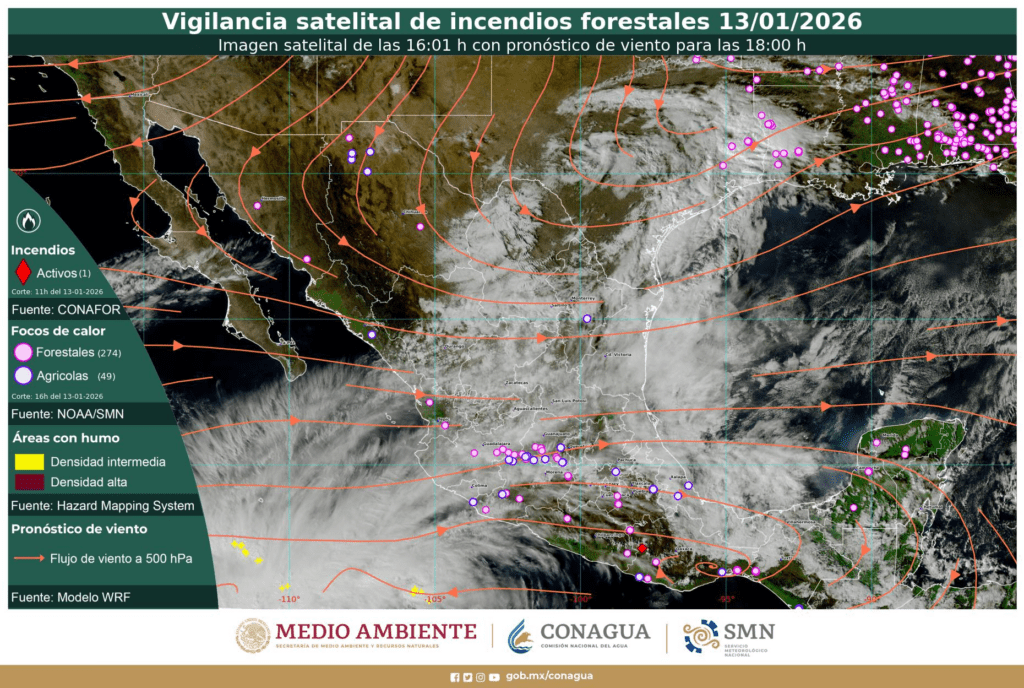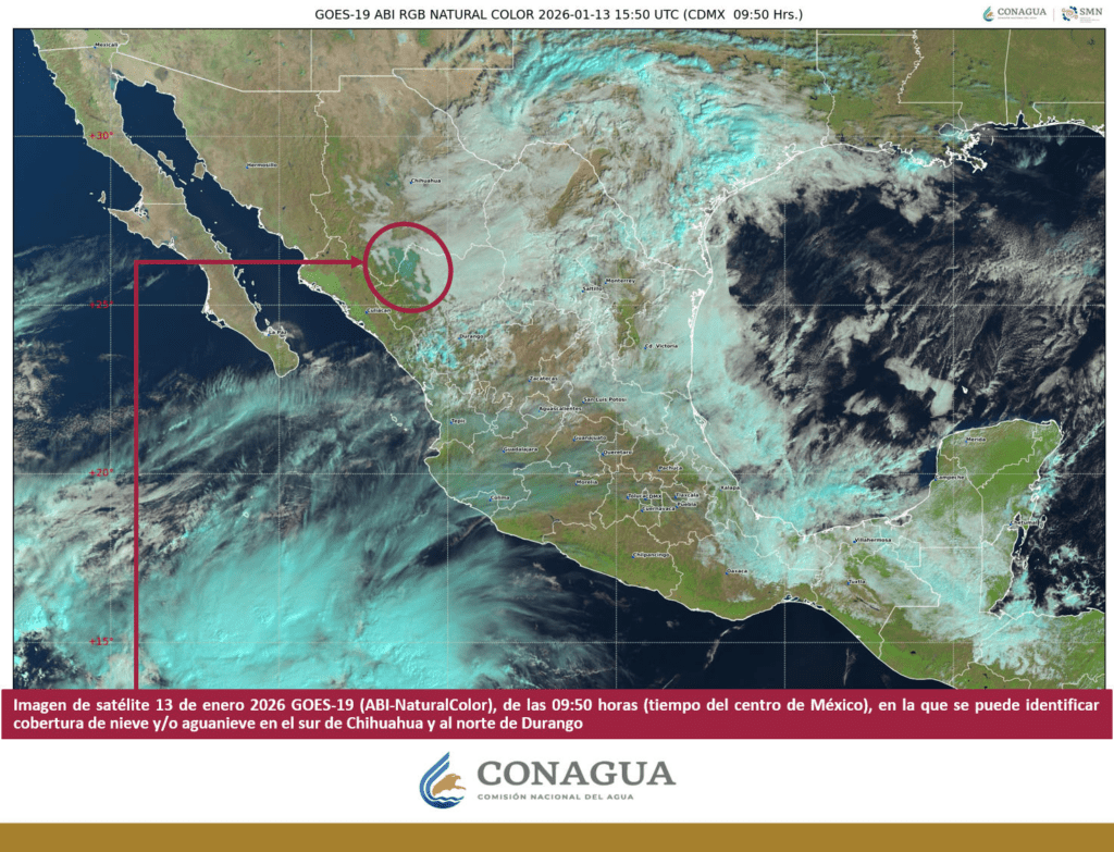 Estas condiciones reforzarán el ambiente frío a muy frío sobre entidades de la Mesa del Norte y la Mesa Central, con bancos de niebla en zonas montañosas de Durango, Chihuahua, Coahuila, Zacatecas, San Luis Potosí, Hidalgo, Querétaro, Puebla, Veracruz, Oaxaca y Chiapas.
