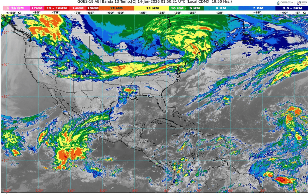Regeneración, 13 de enero de 2026. El Servicio Meteorológico Nacional, fuente oficial del Gobierno de México, emitió aviso de Fenómenos Significativos por condiciones de frío, viento y lluvia durante esta semana.