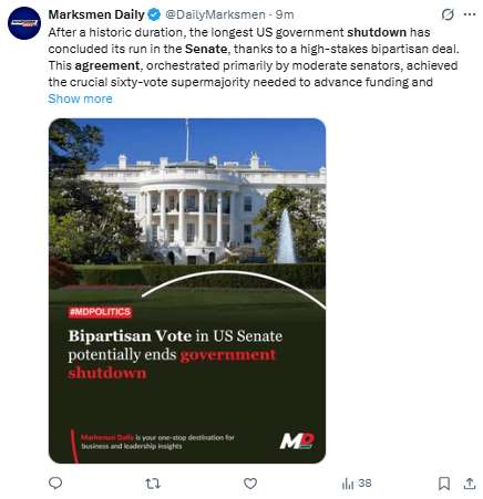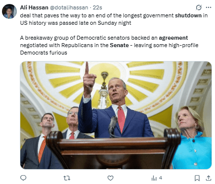 Regeneración, 10 de noviembre 2025– El Senado de EE.UU. dio un primer paso para poner fin al cierre de gobierno más largo de la historia, aprobando un paquete que mantendría a las agencias financiadas al menos hasta enero y revertiría miles de despidos de empleados federales.