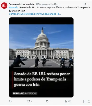 La Cámara de Representantes votará moción para restringir acciones de guerra. Aún si es positivo, Trump podría vetar el resultado