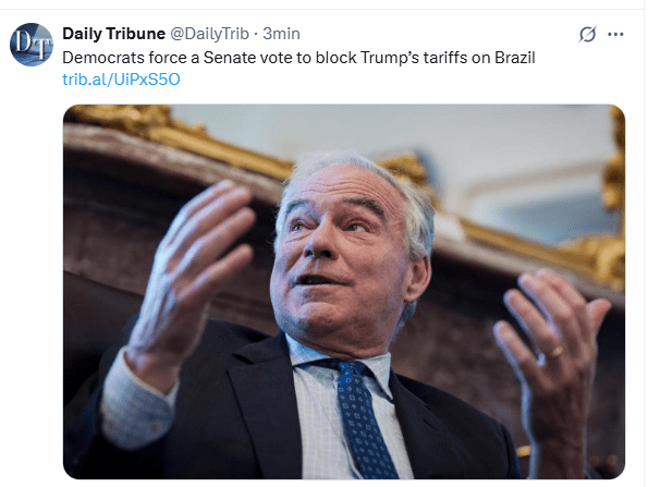 «El Senado acaba de votar 52 a 48 para poner fin a los aranceles del 50% de Trump sobre los productos brasileños!»