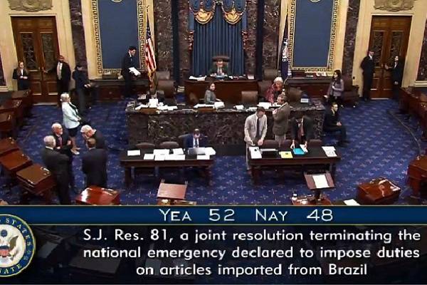Cinco senadores Republicanos se sumaron a Demócratas para sumar 52 votos a favor contra 48 para eliminar aranceles de Trump a Brasil