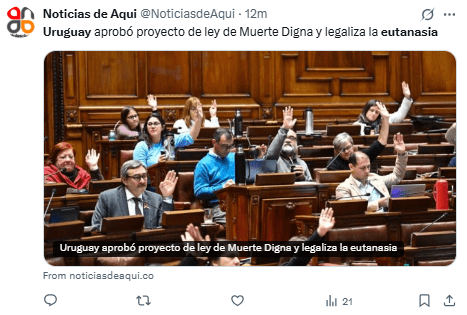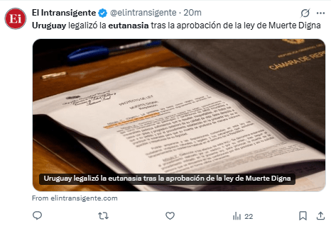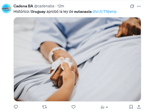 Uruguay legalizó la eutanasia en la Cámara de Senadores con votos del Frente Amplio así como de partidos Colorado y Nacional