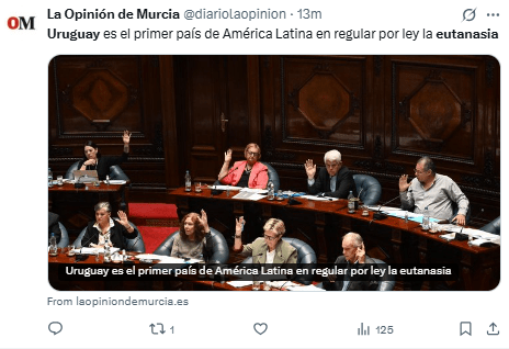 El pasado 13 de agosto, Uruguay había dado el primer paso hacia la legalización de la eutanasia con la aprobación en la Cámara de Representantes.