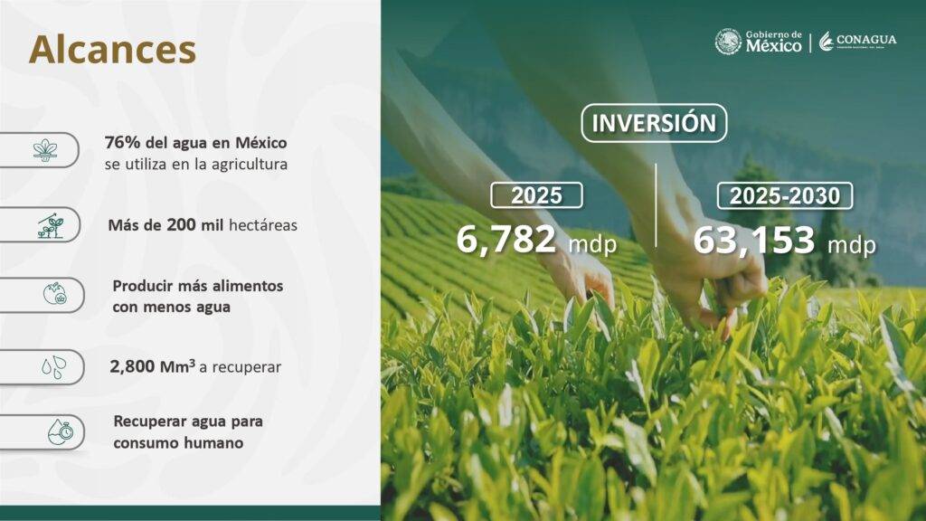 Regeneración, 20 de agosto de 2025. La presidenta de México presentó el programa «México se tecnifica» con la que se recuperarán para consumo humano 2 mil 800 millones de metros cúbicos.