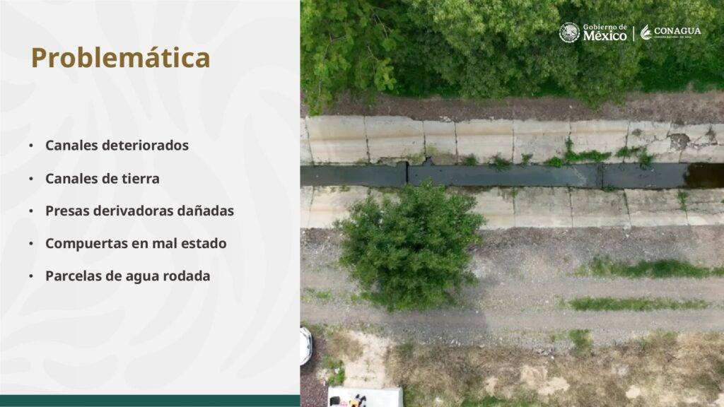 Así como canales de tierra, donde se pierde y filtra mucha agua, presas derivadoras que están dañadas, compuertas que están en mal estado, que se filtra el agua.