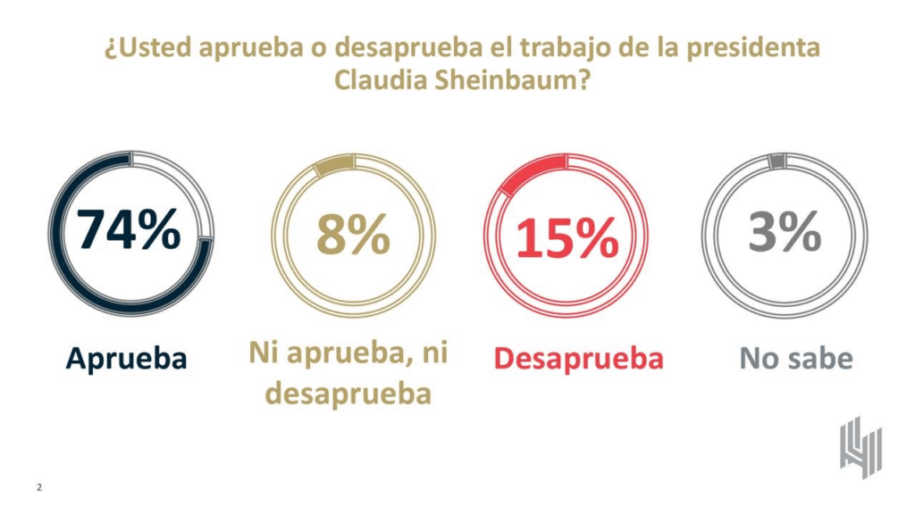 Sheinbaum con 74% de aprobación revela De las Heras Demotecnia