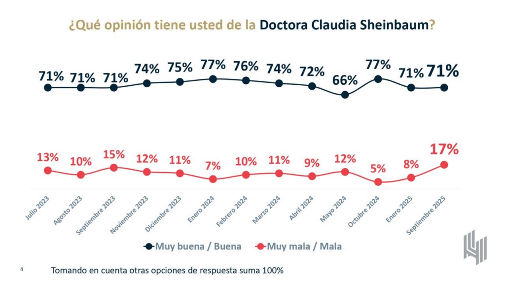 En cambio, en ese mismo periodo la opinión mala o muy mala nunca ha rebasado el 17%, con mínimos de 5% negativo en octubre de 2024.