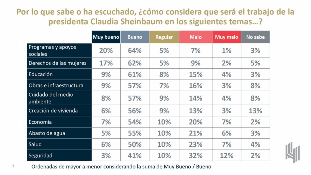 En dicha encuesta se revela una consistente aprobación para la titular del poder ejecutivo mexicano al tiempo que se precisan las preocupaciones ciudadanas.