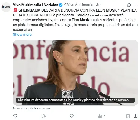 Sheinbaum desiste de acción legal contra Elon Musk