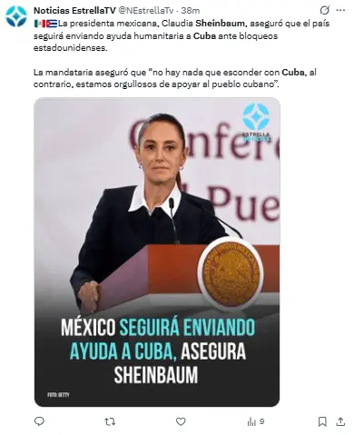 Sheinbaum desmiente que Cuba le pidió no divulgar sobre la ayuda