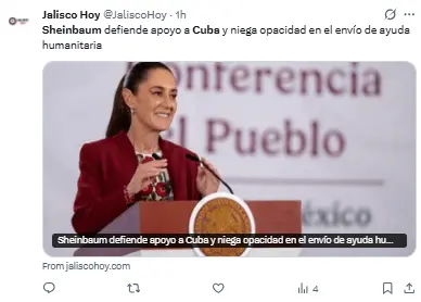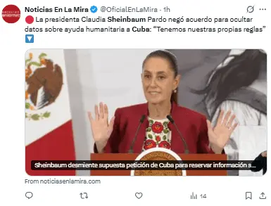 Así se expresó Sheinbaum el jueves en relación a las versiones sobre esa supuesta petición de reserva por parte del gobierno cubano.