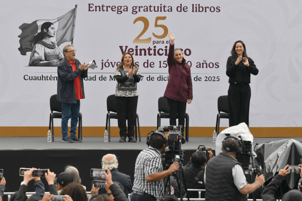 Regeneración, 17 de diciembre de 2025. Sheinbaum encabezó la entrega gratuita de 2.5 millones de libros a jóvenes de 15 a 30 años de Latinoamérica de la colección 25 para el Veinticinco.