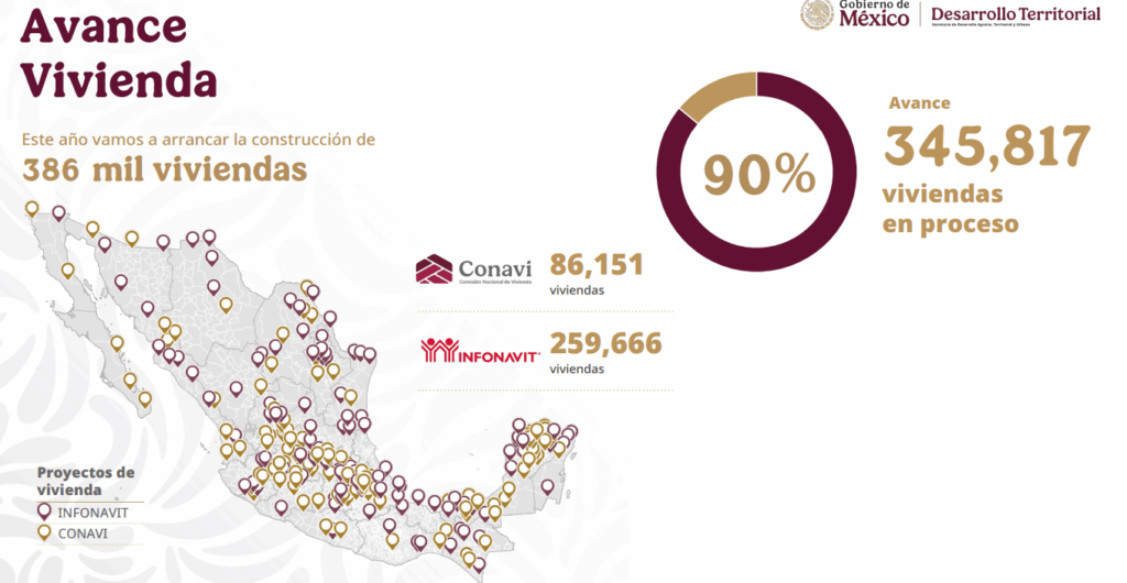 La secretaria de Desarrollo Agrario, Territorial y Urbano, Edna Elena Vega Rangel, detalló que al momento se tienen 345 mil 817 viviendas en proceso.