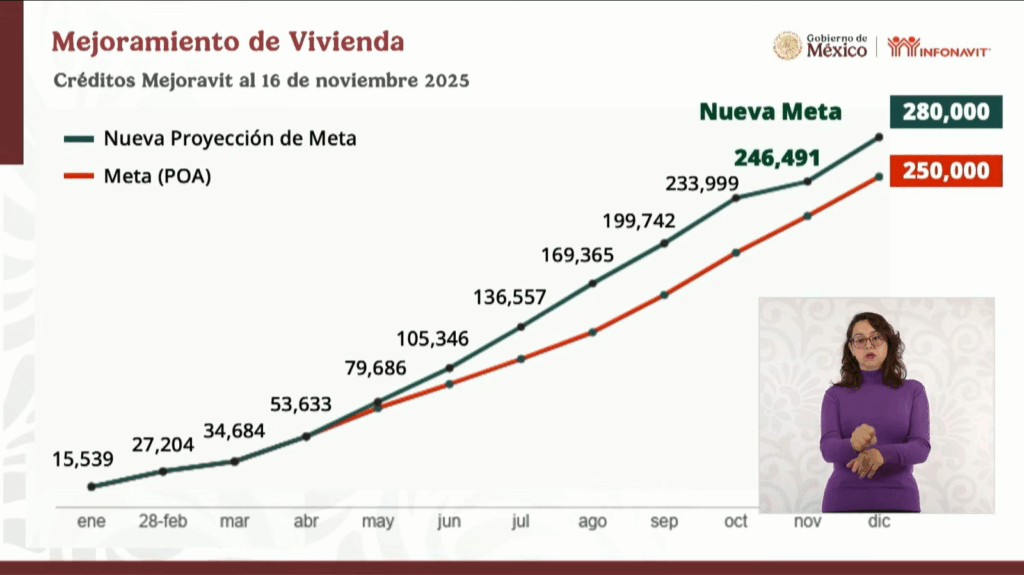 Lo que representa un avance del 90 por ciento de la meta de este año de 386 mil: 256 mil 666 del Infonavit y 86 mil 152 de la Conavi.