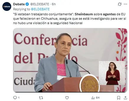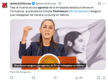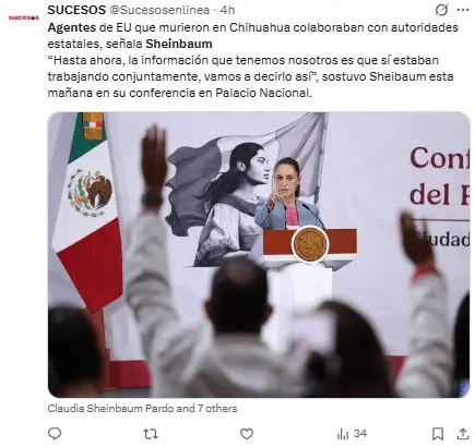 Regeneración, 21 de abril 2026– «Estaban colaborando», afirmó la presidenta Claudia Sheinbaum en relación a la muerte de dos agentes instructores de la embajada estadounidense que fallecieron en un accidente después de haber participado en un supuesto operativo contra narcolaboratorios en Chihuahua.