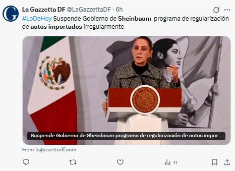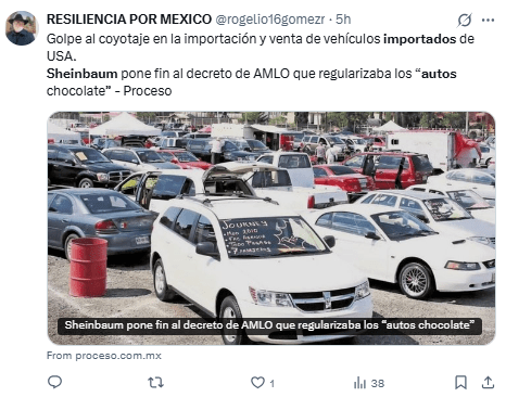 Regeneración, 2 de enero de 2026– El gobierno de Claudia Sheinbaum recortó el tiempo de vida del programa de regularización de autos usados que fueron importados de manera irregular desde 2022.