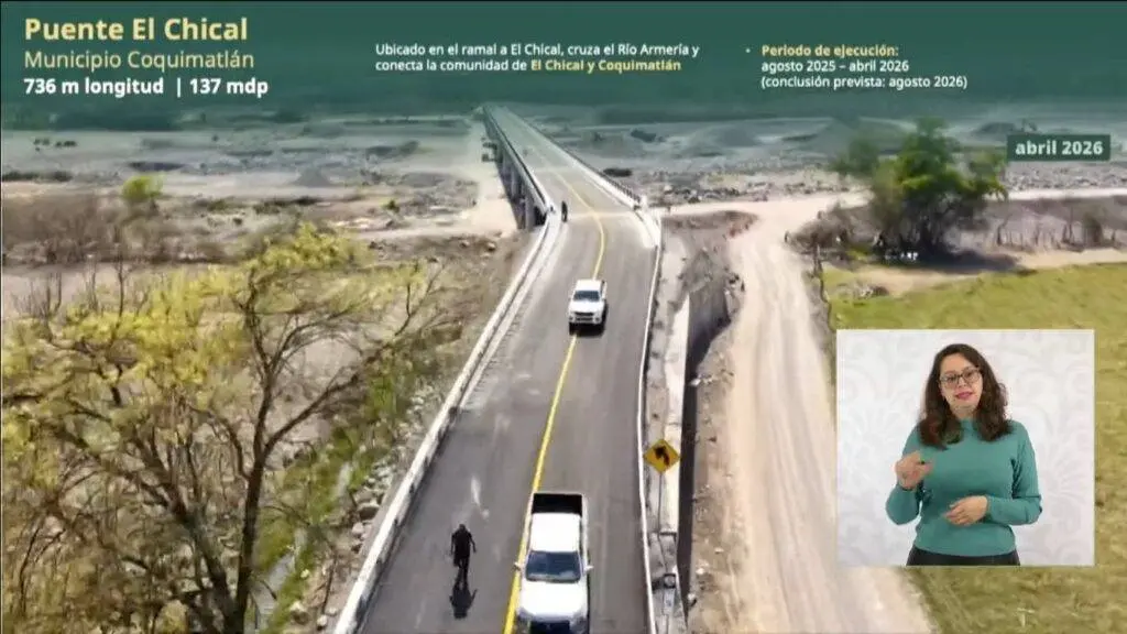 Regeneración, 23 de abril de 2026.– La Presidenta Claudia Sheinbaum Pardo inauguró tres puentes vehiculares en el estado de Colima mediante un enlace oficial.
