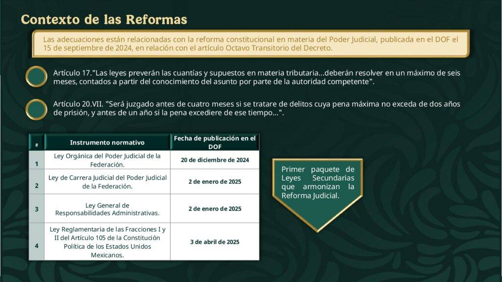 Misma que envió al Senado de la República, el segundo paquete de armonización de Leyes Secundarias en materia de la Reforma al Poder Judicial.