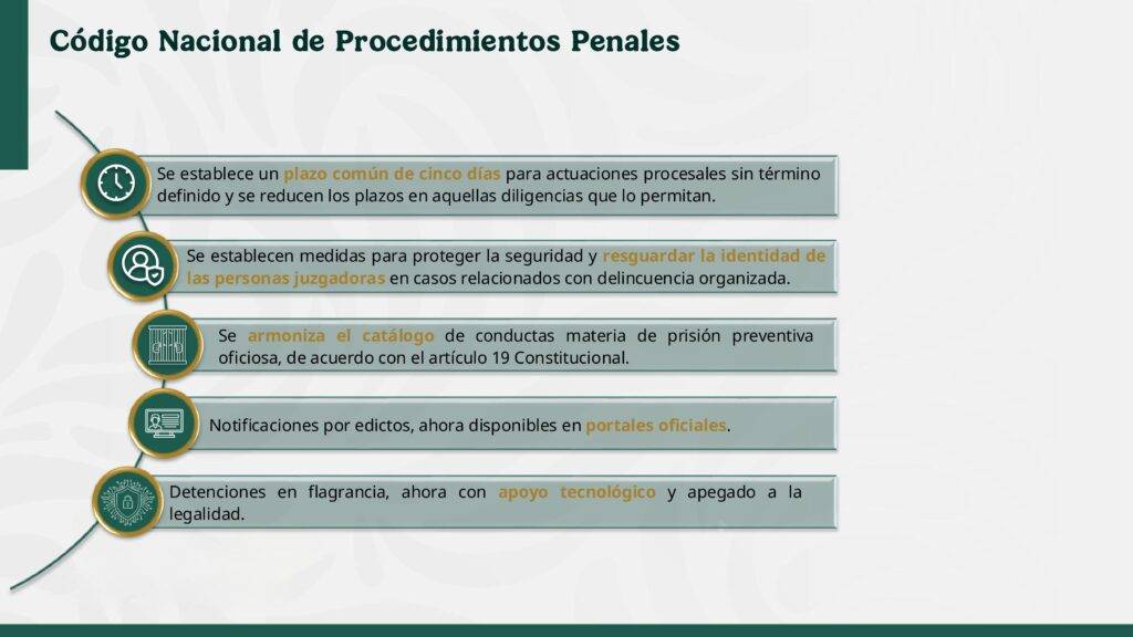 Además de que se incorporan nuevas herramientas para modernizar la justicia, se ajustan recursos fiscales y se homologan los delitos que ameritan prisión preventiva.