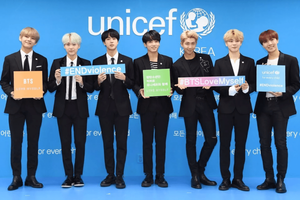 Desde noviembre de 2017, BTS se ha asociado con los Comités Coreano y Japonés de UNICEF para lanzar Love Myself (amarme a mí mismo).